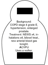 On the back side, there is information about medical history, ongoing treatment, level of consciousness, and the patient’s mobility status.