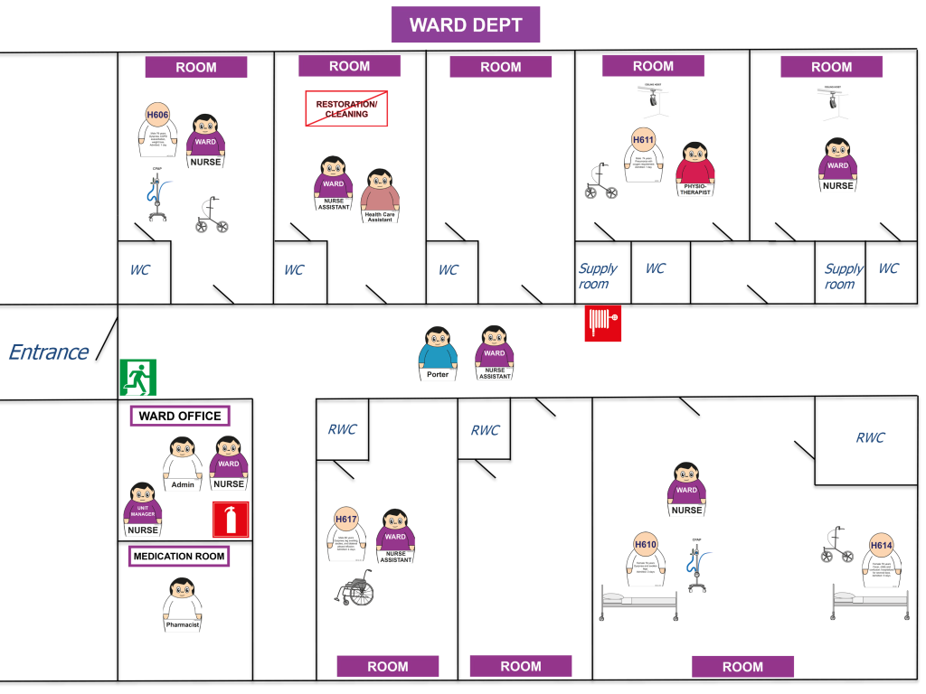 The material also contains a template with detailed information and answers of all ward-patients that can be used by the ETS instructor if participants, for example, ask questions about the latest NEWS, test results, etc.