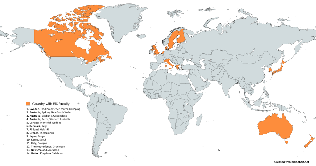 The Educator Program has been successfully conducted in Italy, the Netherlands, United Kingdom, Finland, Greece, Australia, New Zealand, Japan, Korea, Canada and Denmark. There are now (November 2025) more than 150 ETS Educators in 14 ETS faculties.